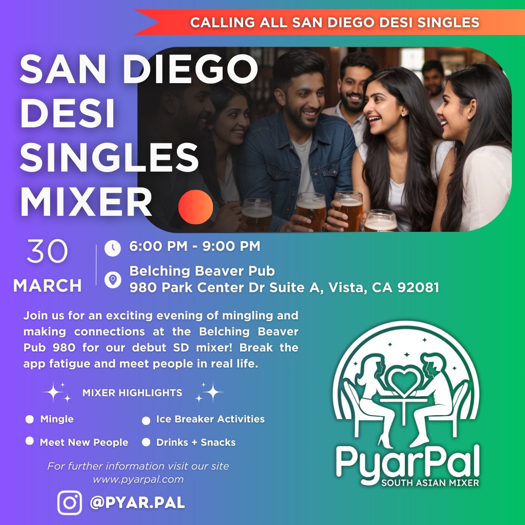 San Diego Desi Singles Mixer @ Belching Beaver Pub 980 Vista on March 30th!